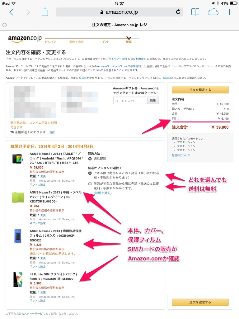 ちなみに、「Nexus7(2013) LTE版 32GB」には1%のAmazonポイント(398pt)が付くので、次の買い物の時に使えますよ。