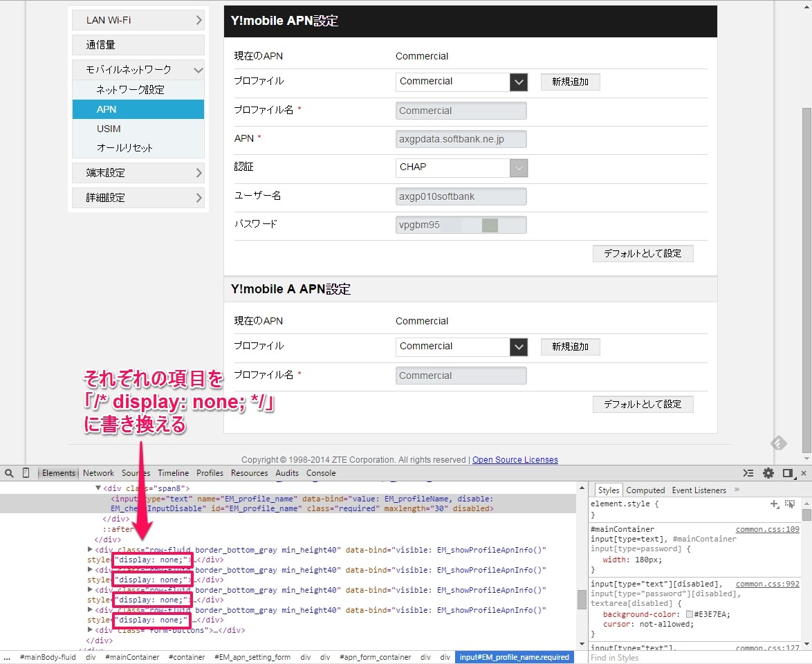 これで、「Y!mobile APN」は必要な要素が表示されました。