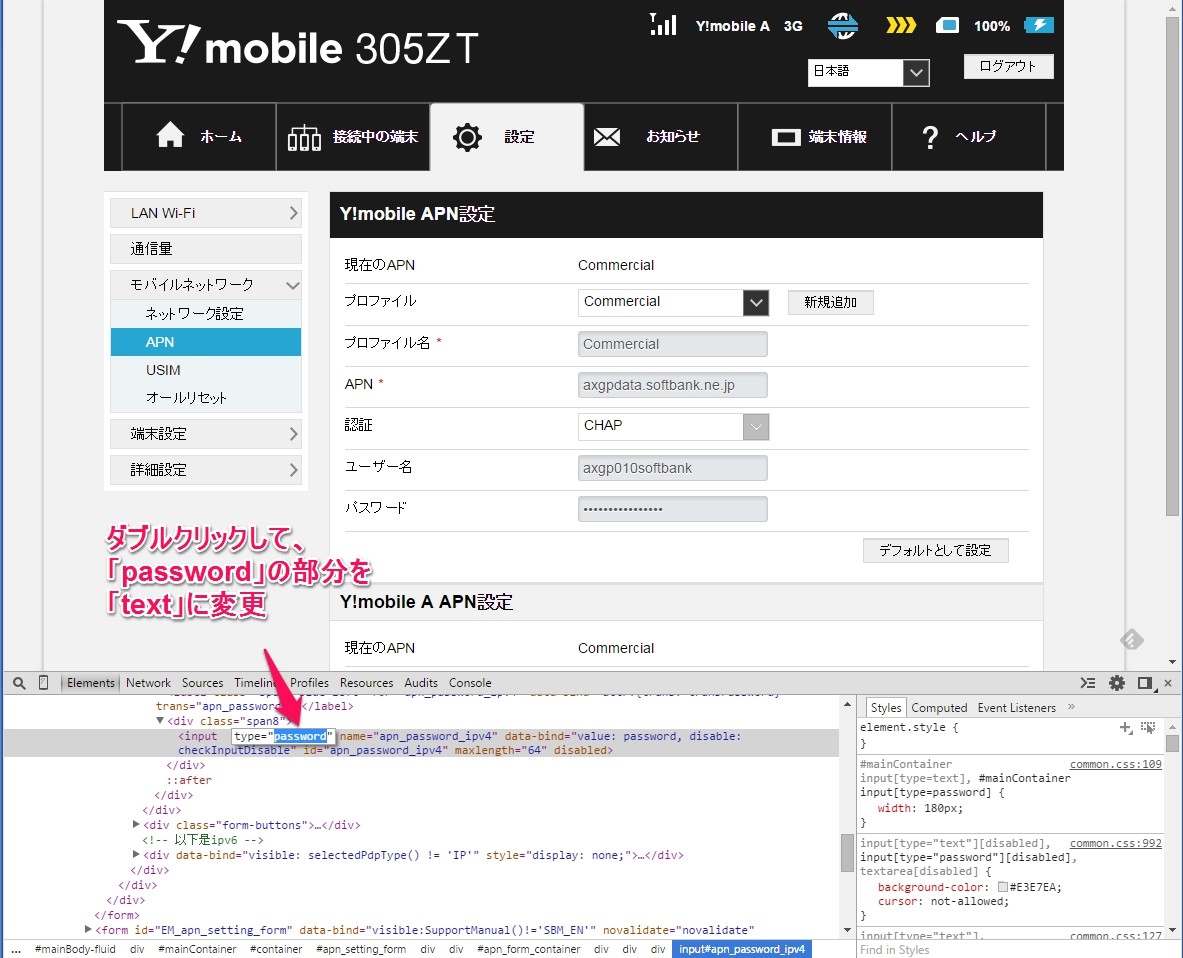 APNとユーザー名は同じでしたがパスワードが
