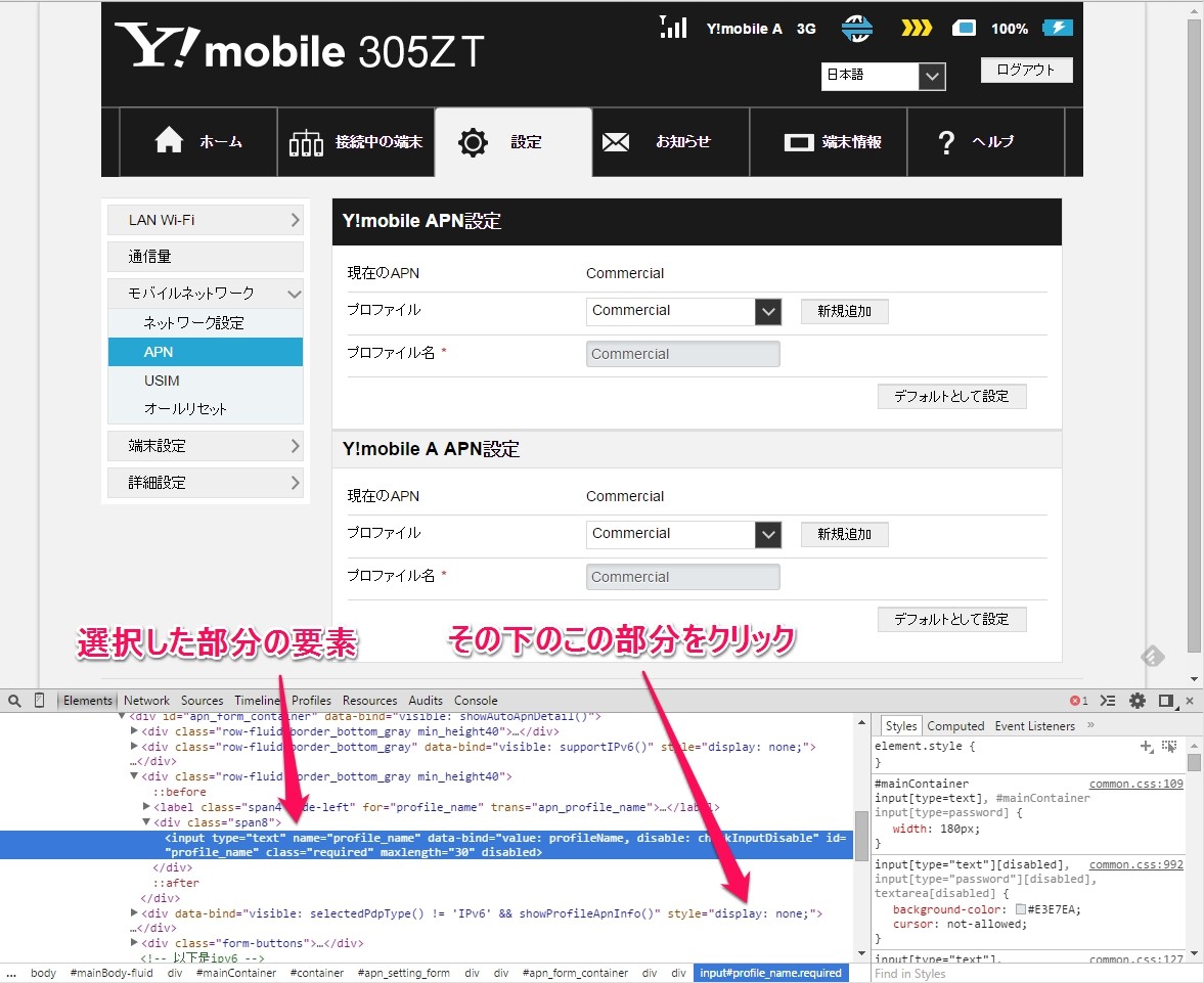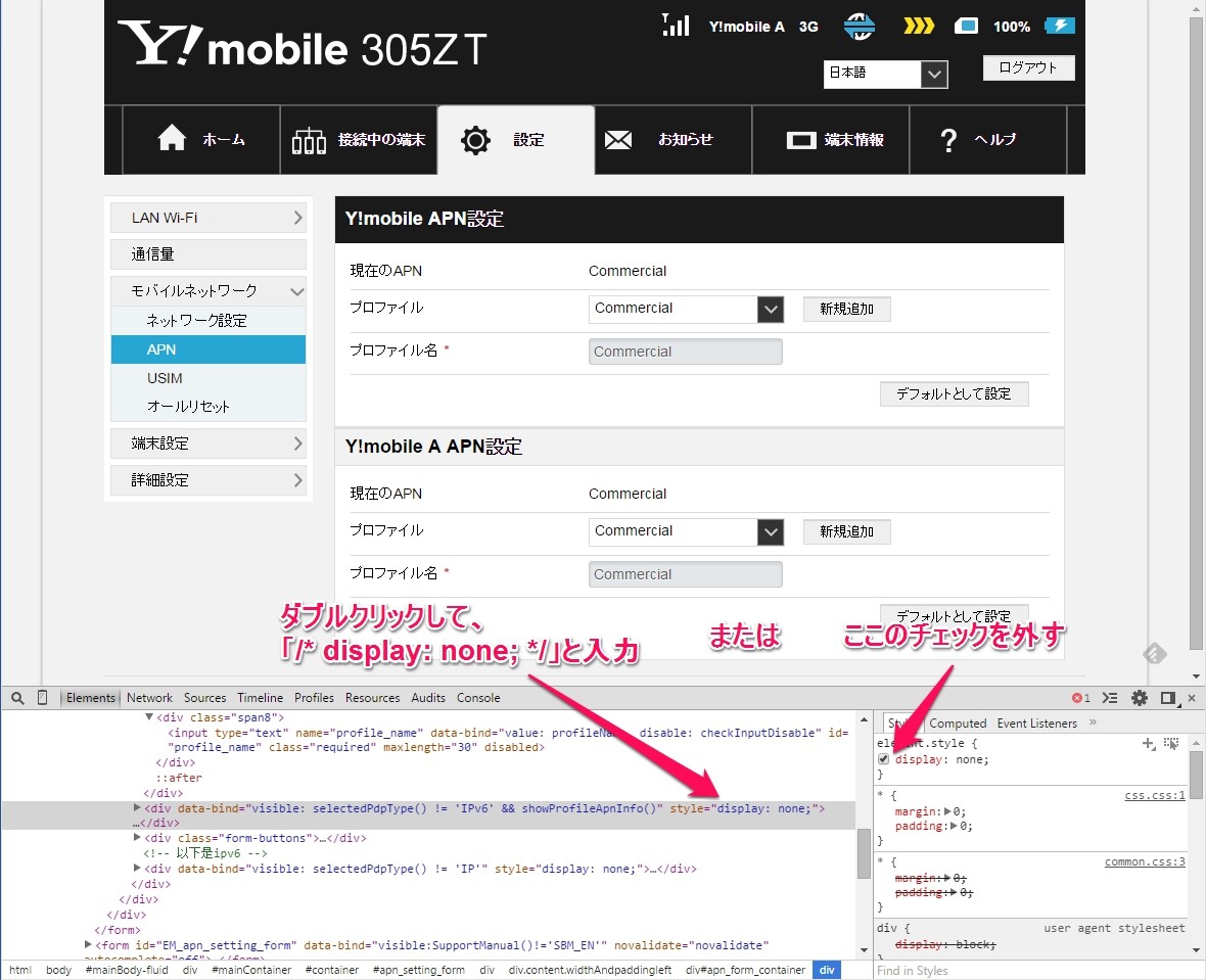 続いて、「Y!mobile A APN設定」